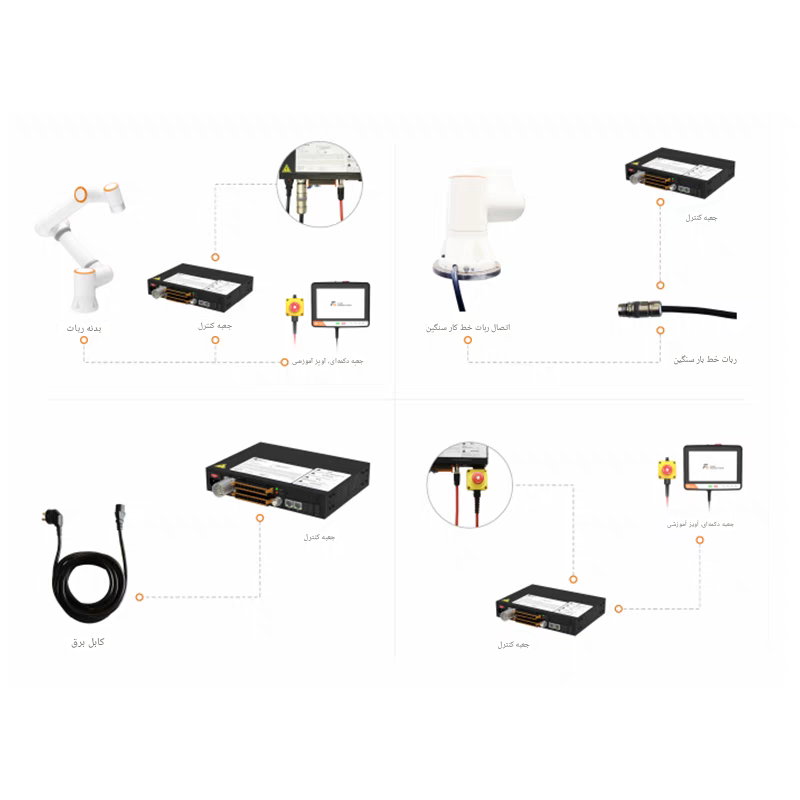 ربات همکار FR5 میتواند به دو روش فرمان بگیرد، روش اول با محیط نرمافزاری کامپیوتر و محیط سه بعدی است و روش دوم که سادهتر میباشد استفاده از ماژول وایرلس و جابجایی فیزیکی دستگاه و نقطه دادن به آن است.